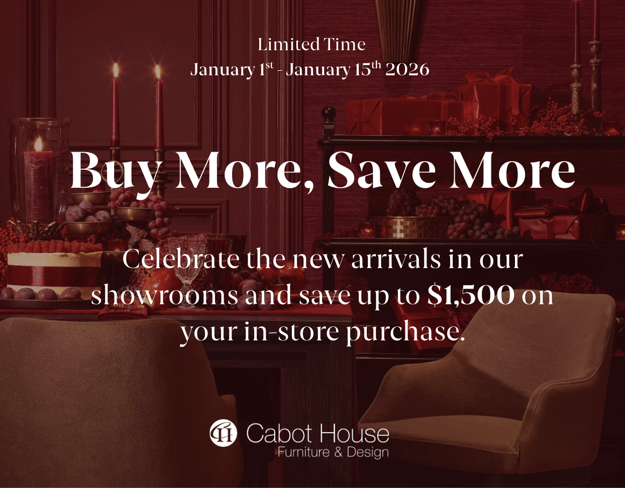 At Cabot House Furniture & Design, we provide designer home furnishings and interior design services. Our curated selection of luxury brands gives our talented designers and trade partners the ability to design with style and good taste. Shop here online, visit one of our showrooms, or call to schedule a private appointment. We are looking forward to seeing you soon!