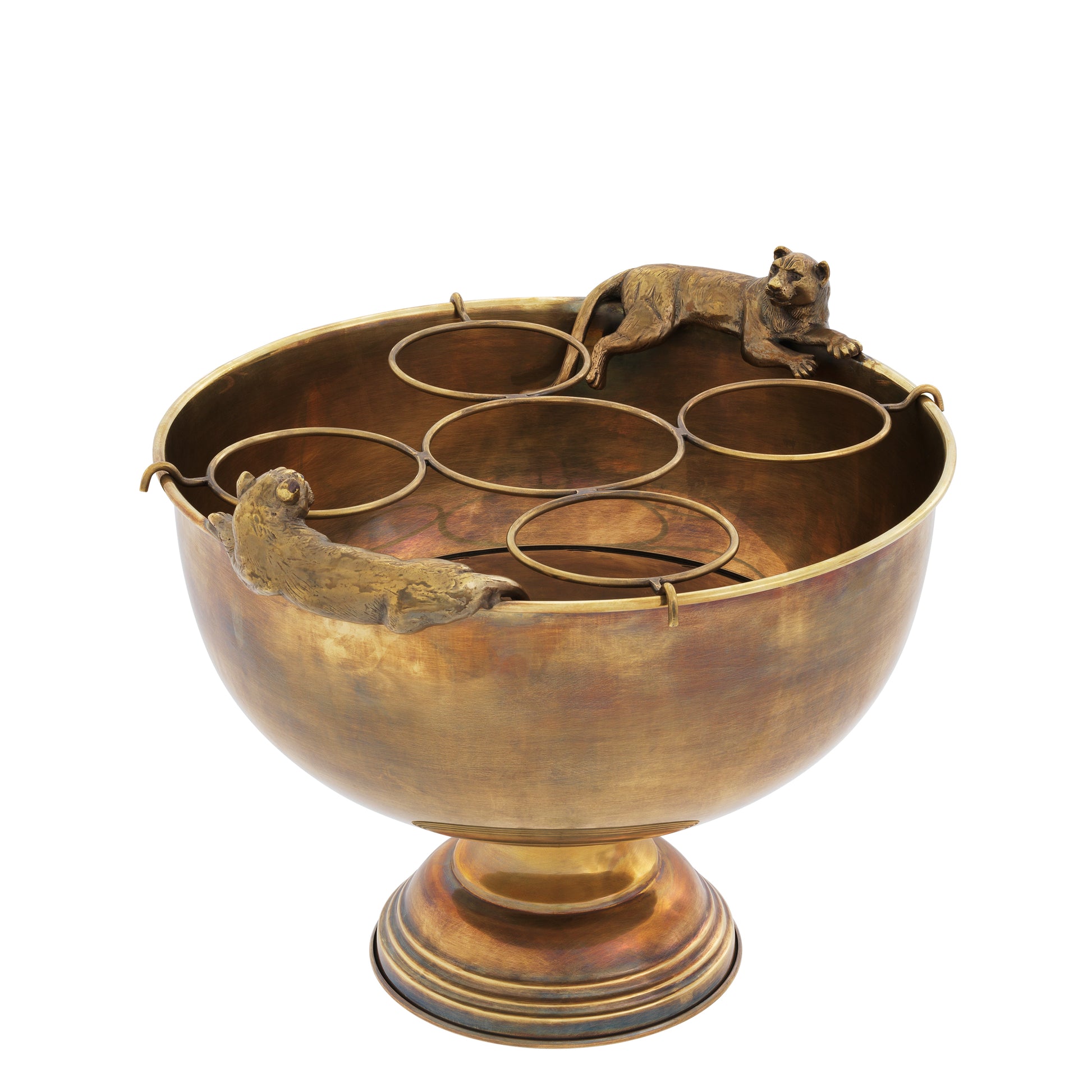 Keep your bubbles upright and at the perfect drinking temperature with the Jordan Champagne Cooler. This eye-catching ice bowl comes in a finish. It features two handles in the shape of a puma and offers space to five bottles.