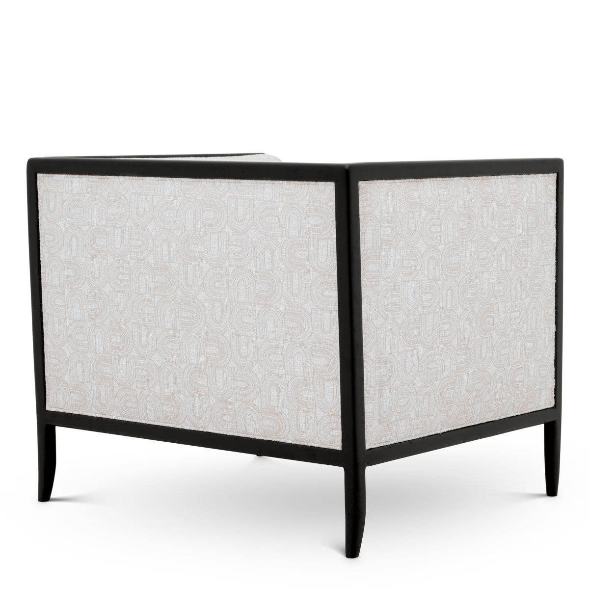 The epitome of luxurious comfort, the Lauriston Chair will elevate your living space. This elegant chair combines refined design with versatile comfort, upholstered in two different fabrics with a contrasting interior and exterior. Its sleek frame is crafted from wood and finished in black, offering endless styling options.