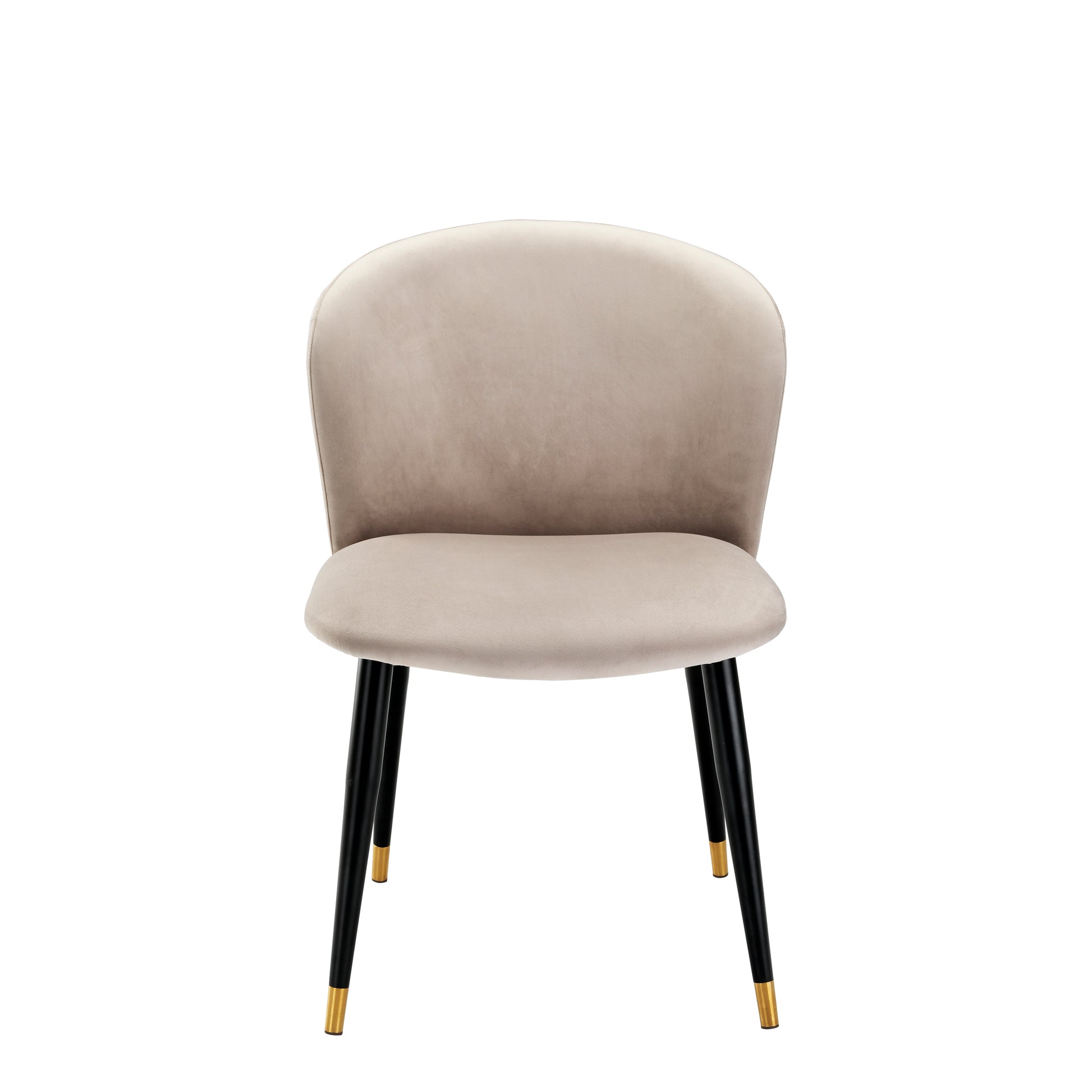 Indulge your dining room with velvet Volante Dining Chair. This decadent retro revival draws inspiration from the signature silhouettes of Mid-Century dining chairs. Cleverly proportioned, its curved back is designed to cocoon around you. Tapered black legs with brass tips detailing complete the look.